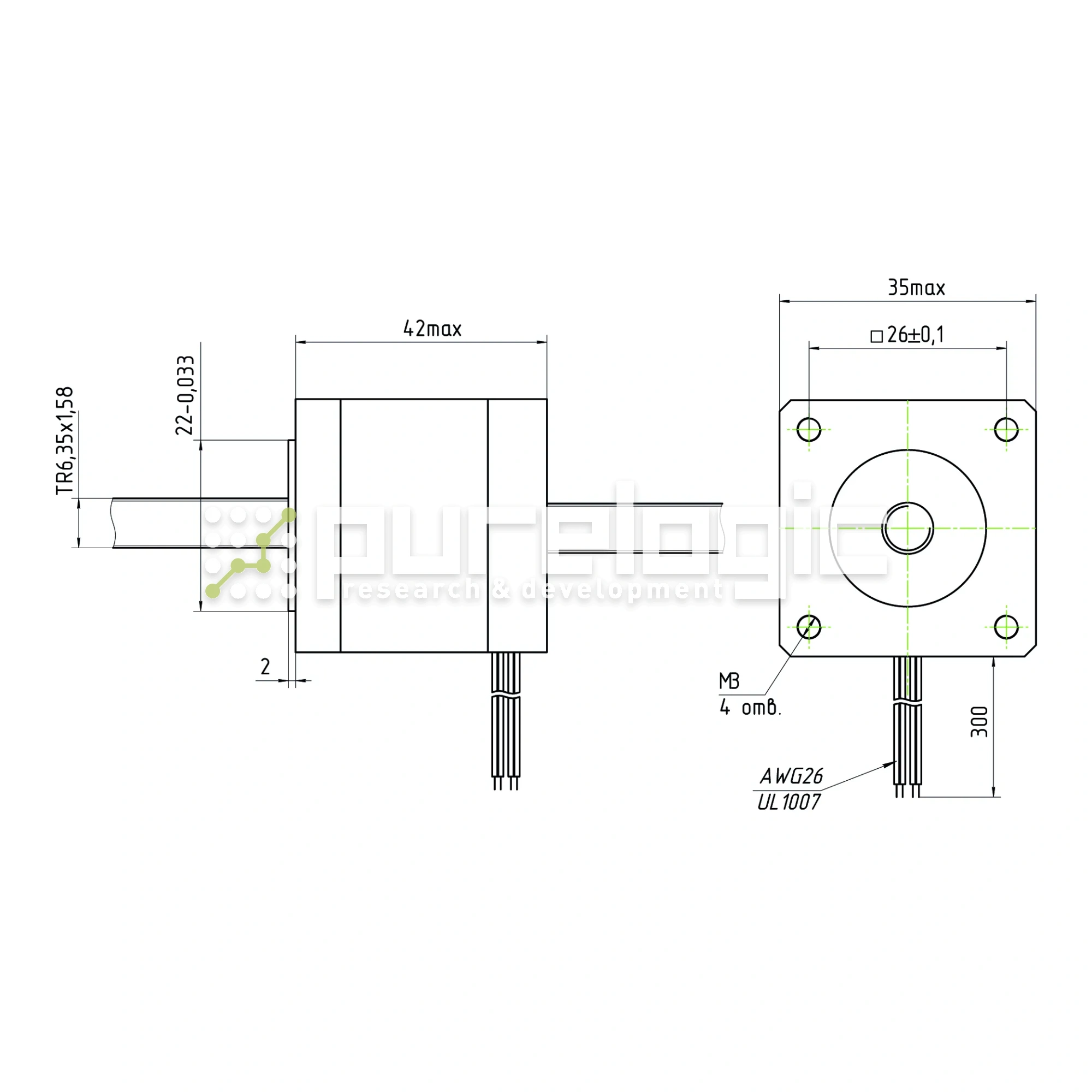 - Двигатель шаговый с вал-гайкой 14HY4402-6.35x1.58