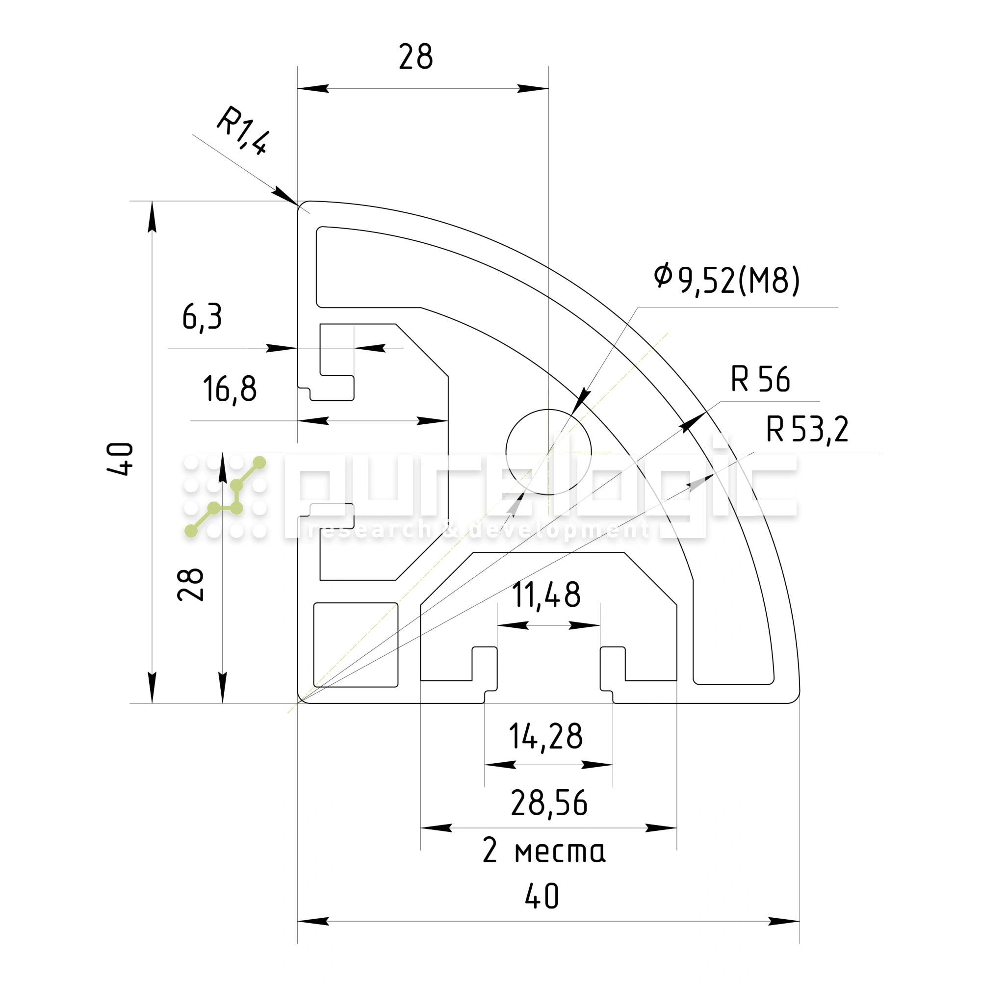 Профиль алюминиевый HXB4040R-8