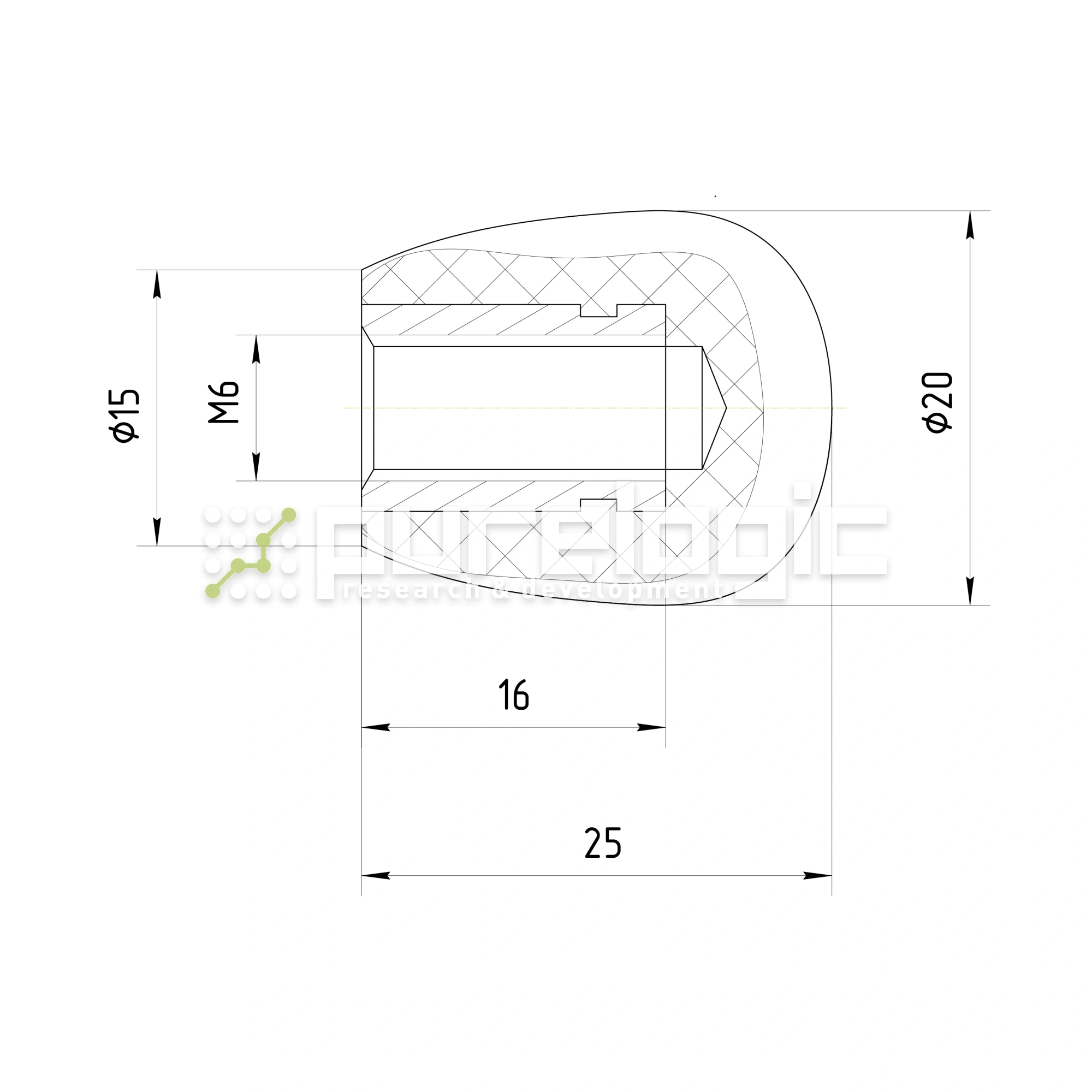 Ручка овальная 100122-25*M6
