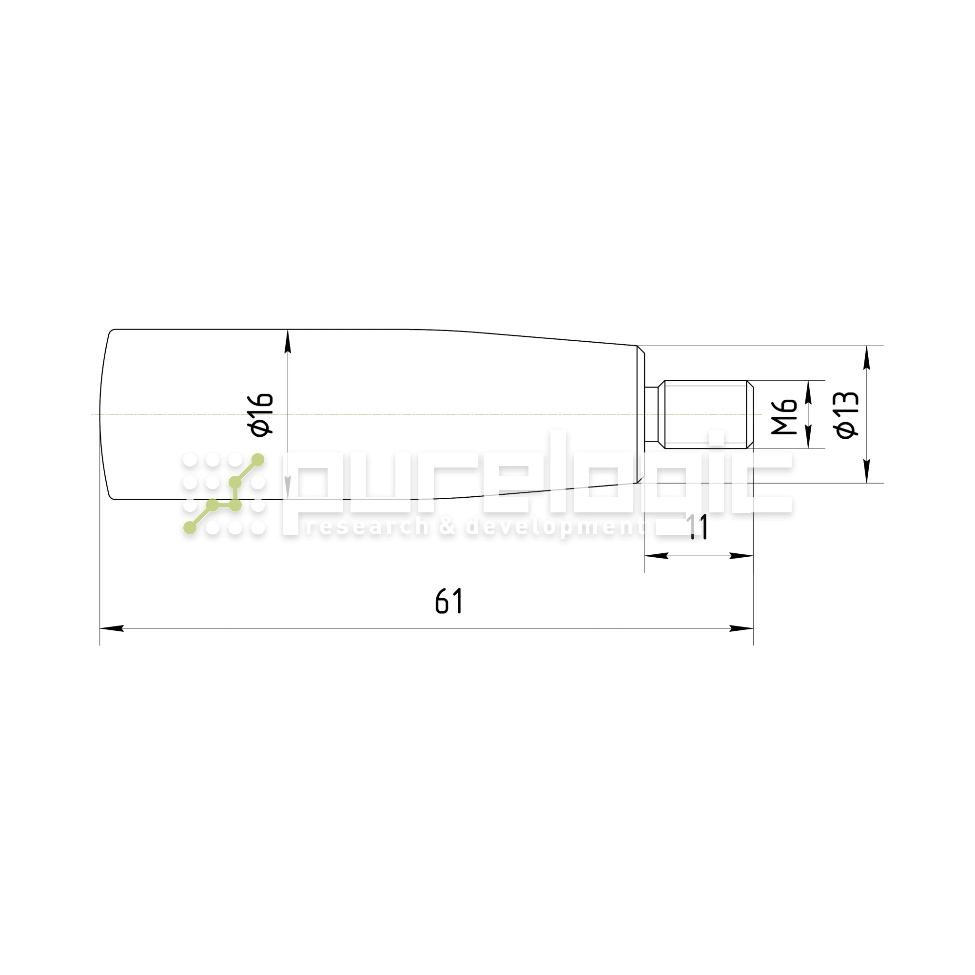 Рукоятка маховиков для применения в машиностроении, судостроении, измерительном оборудовании и в военной промышленности. L=50мм, D=16мм, шпилька М6