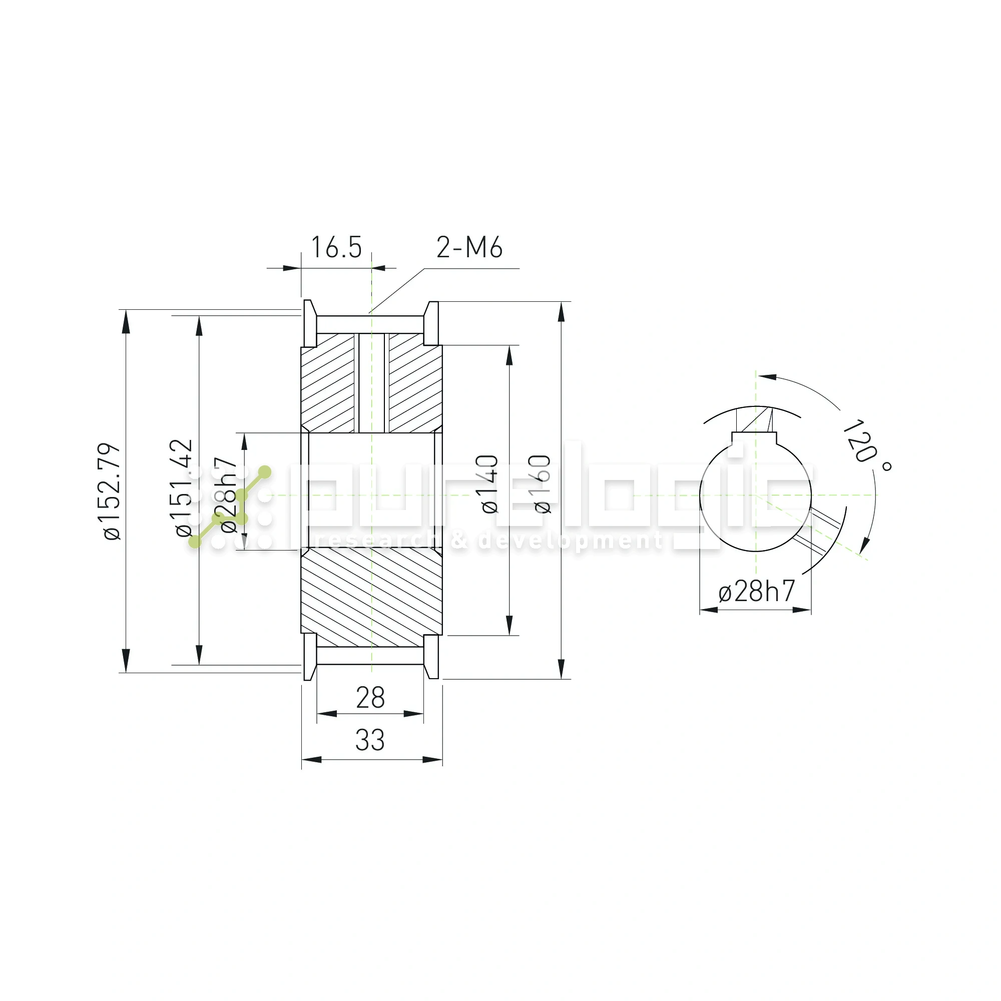 Шкив зубчатый BLA-60-8M-25-A-N28
