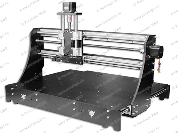 Среднеформатный фрезерный станок ЧПУ. Особенностью станка является расположение оси Y по короткой стороне портала. Предназначен для 2D/3D обработки дерева, пластика, текстолита и пр. Рабочая область: 350*600*91мм; рабочий стол: сталь, отв. М5; материал станины: алюминий, сталь; направляющие: TBR X,Y-16мм, LM Z-16мм; передачи: трап. винт + капролон X,Z-12х3, Y-16х4; шаговые двигатели: Х,Z - PL57H56, У - PL57H76; точность позиционирования: 0.3мм/100мм; максимальная скорость: 3000мм/мин; диаметр крепления шпинделя: 43мм; вес: 53кг