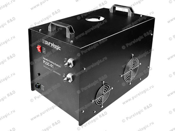 Система охлаждения представляет собой законченное устройство, состоящее из заправочной емкости, насоса, радиатора и электроники управления. Циркулирующая жидкость в системе (обычно используется дистиллированная вода, смесь вода-спирт, разбавленный тосол) принудительно охлаждается через теплообменник потоком воздуха. Разработано и произведено Purelogic R&D.