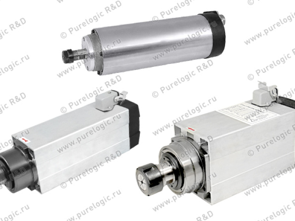 <p align="justify">Высокоскоростные шпиндели с принудительным воздушным охлаждением широко применяются в различных промышленных установках европейского производства и на отечественных предприятиях. В шпинделях используются высокооборотные керамические подшипники, не требующие обслуживания. Управление шпинделями осуществляется при помощи преобразователей частоты. Фреза крепится в цанговый зажим и фиксируется гайкой.</p>